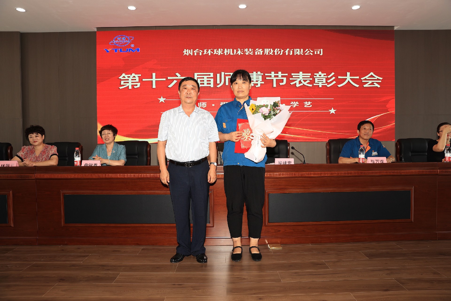9月9日上午,煙臺環(huán)球機(jī)床裝備股份有限公司第十六屆企業(yè)師傅節(jié)表彰大會在福潭路廠區(qū)四樓多功能廳召開。應(yīng)邀在百忙中蒞臨企業(yè)指導(dǎo)工作的上級領(lǐng)導(dǎo)和合作院校領(lǐng)導(dǎo)有煙臺市總工會副主席張瑞鳳,福山區(qū)人大黨組副書記、副主任、區(qū)總工會主席畢建宏,煙臺汽車工程職業(yè)學(xué)院黨委副書記曲耀春,區(qū)總工會黨組書記、常務(wù)副主席林麗云,區(qū)人社局勞動關(guān)系科科長姜春娟。公司董事長、總經(jīng)理張萬謀、黨委書記、常務(wù)副總經(jīng)理崔文剛出席會議并在主席臺就座;來自全公司各中心、事業(yè)部和子公司的近160名員工出席會議。崔文剛主持會議并宣讀表彰決定。張瑞鳳副主席、畢建宏主席和張萬謀董事長分別講話,對公司技能人才培養(yǎng)工作提出要求,寄予厚望。